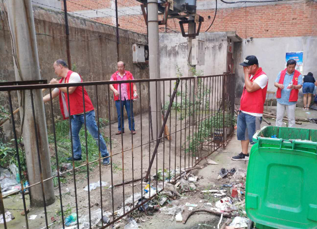 全体党员志愿者身着红马甲,组织有序,分工明确,有的手拿捡拾器和塑料袋,对小区绿化带、地面杂物和卫生死角进行了清洁打扫,有的手拿小铁铲对粘贴在墙上的小广告进行了清除,有的推着小车将楼道内的杂物运走。时值盛夏,烈日当头,气温达到36度以上,志愿者们被热浪包围,汗水湿透了衣衫,却没有一个人放松懈怠,大家不怕脏,不怕累,干劲十足,毫无怨言。一个多小时后,在志愿者们的齐心协力下,将小区打扫的焕然一新,彻底解决了小区存在的脏、乱、差问题,居民们纷纷点赞。