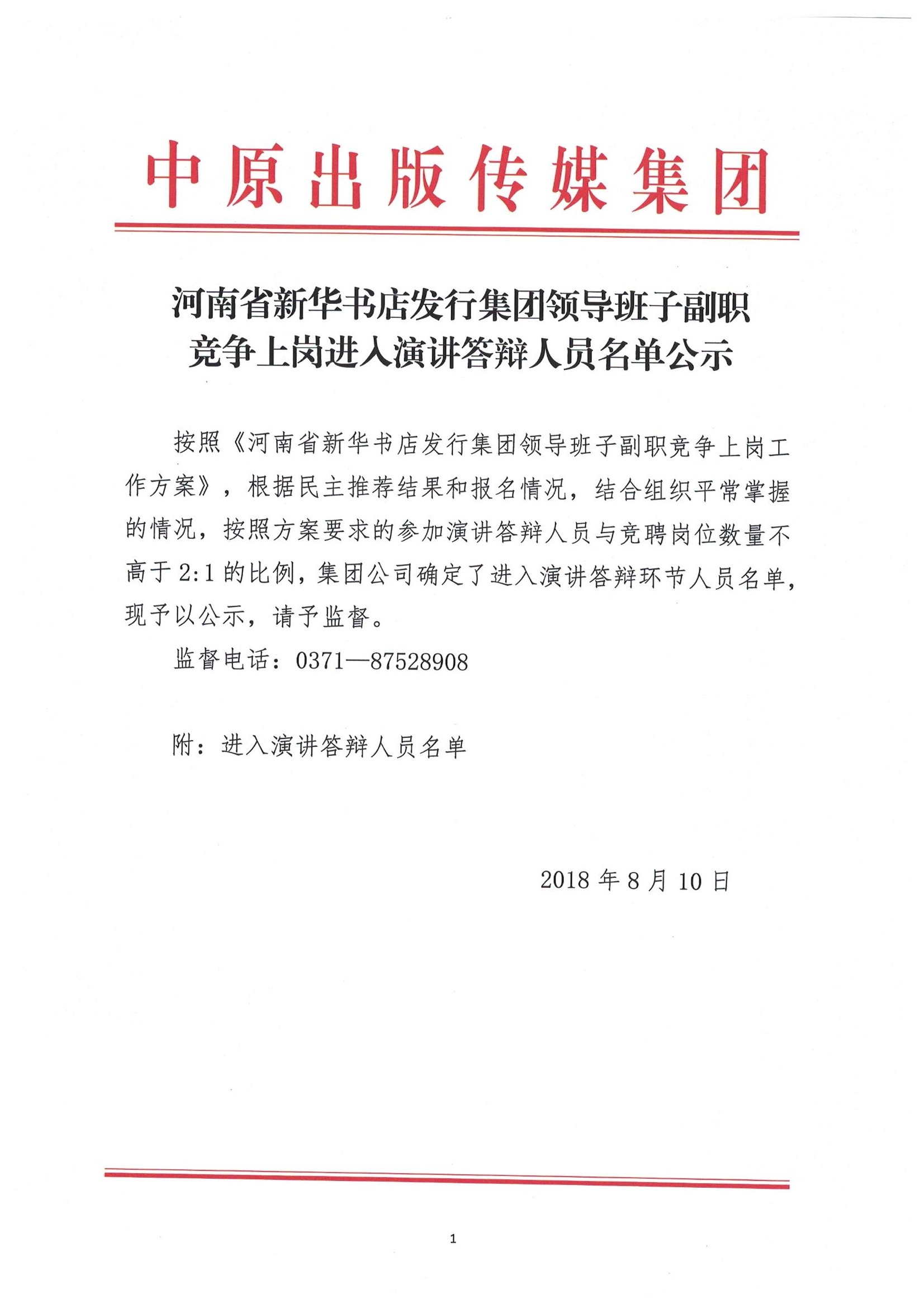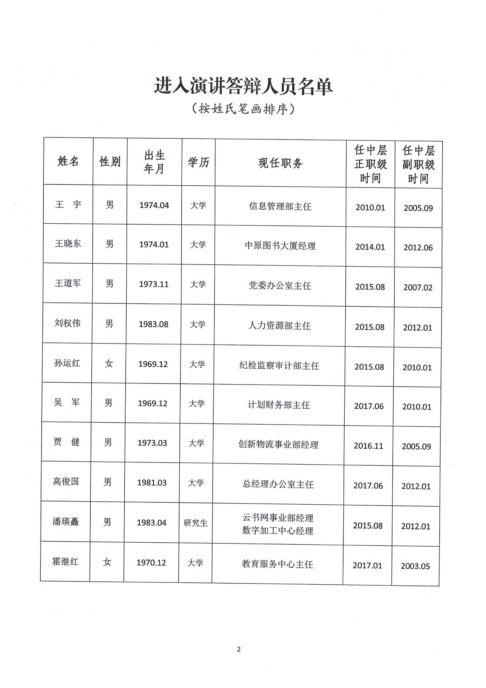 河南省新华书店发行集团领导班子副职竞争上岗进入演讲答辩人员名单公示