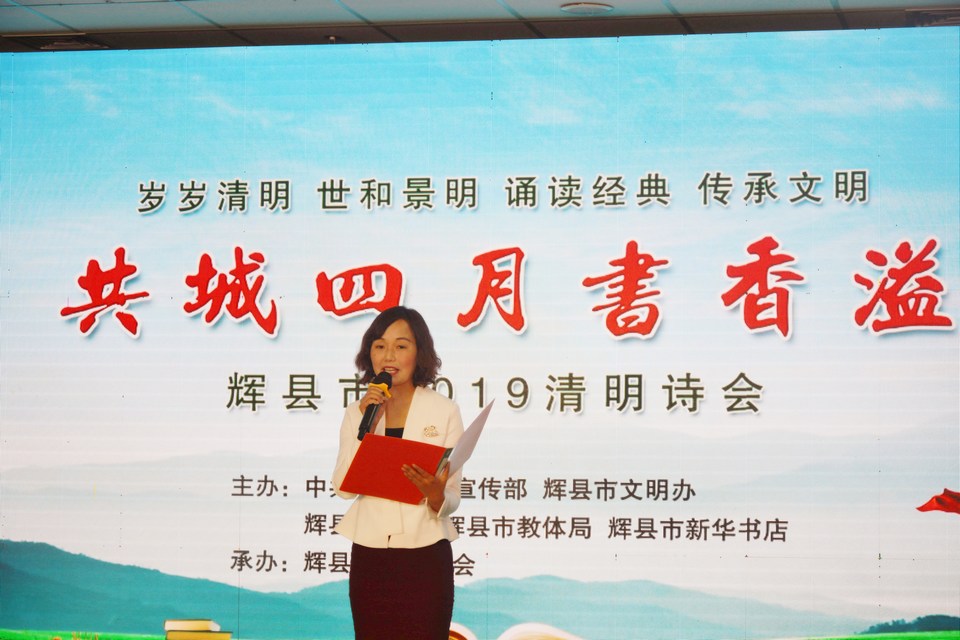 4月4日晚,由辉县市委宣传部、教育局、文联、文明办和辉县市新华书店主办,辉县市朗诵协会承办的“共城四月书香溢”辉县市2019清明诗会,在书店图书大厦举办。