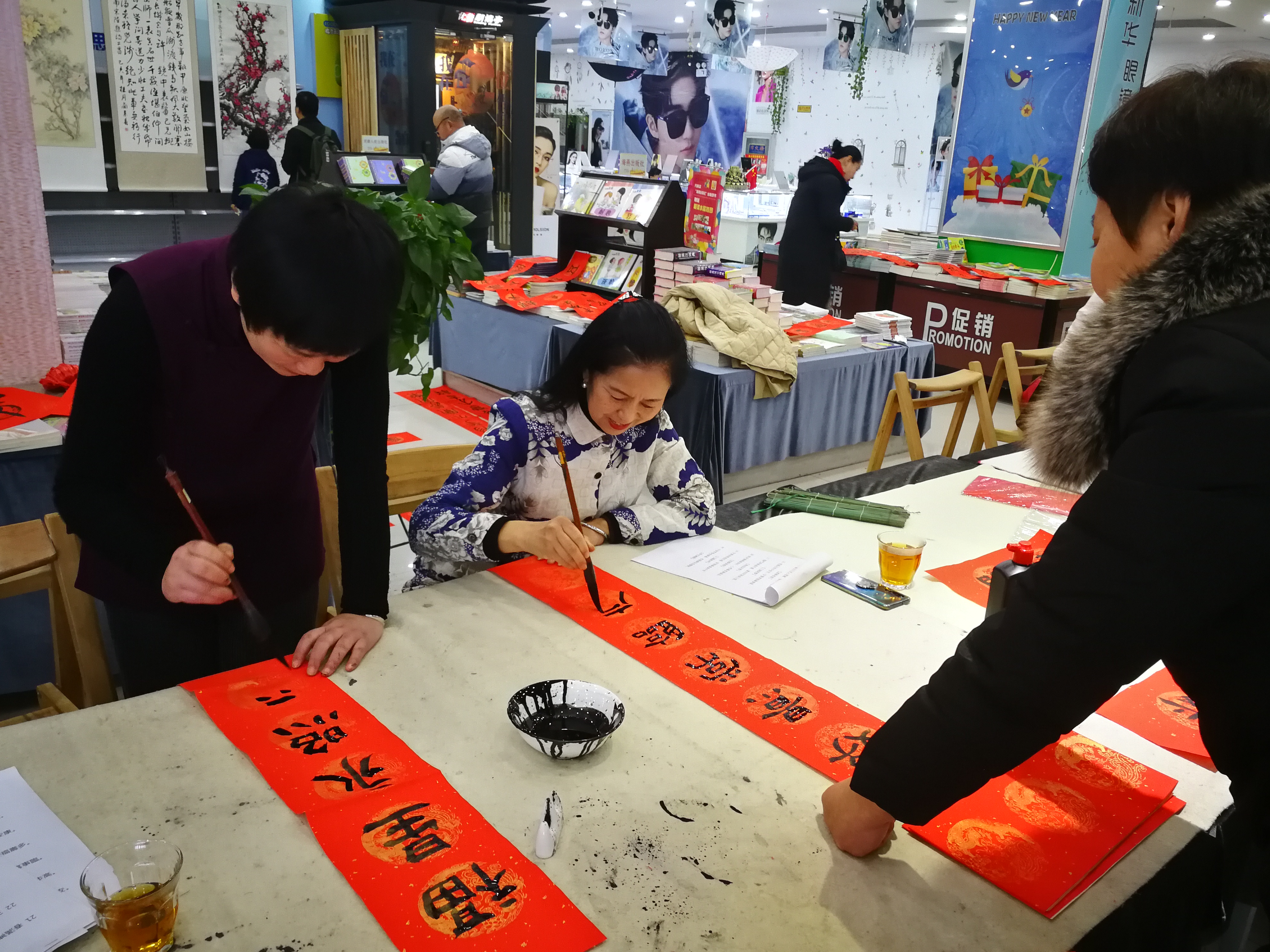 元月12日,新乡市店在购书中心举办了“春联有范儿”为主题的新乡市女子书画家协会义写春联活动。活动共邀请了新乡市十余名女性书法家现场为读者义务书写并赠送春联活动,当天购书读者凭小票均可领取一份包含墨香和祝福的春联,同时,贫困职工、劳模、环卫工人均可优先领取书法家手写春联一副。据了解,活动当天,来自新乡市女子书画家协会的书法爱好者现场挥毫泼墨,共计送出福字170余幅,春联300余对儿,为广大市民送去属于新华人的新春祝福。