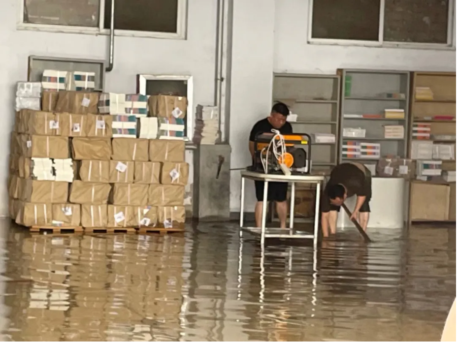 连日来,各地新华人齐上阵,想尽一切办法,竭尽全力“抢救图书教材”:冒雨铺设抽水管道,赤膊上阵,双手接力保教材……没有什么能阻挡新华人抢救教材的步伐。