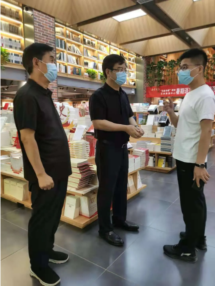 8月2日上午,集团公司党委副书记、副董事长王大玮一行先后到中原图书大厦、省直书店、尚书房尚书苑店督导检查疫情防控工作落实情况,并慰问坚守一线的职工,嘱咐疫情期间做好个人防护。