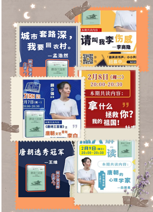 我们共同学习了“我拿什么拯救你?我的祖国!——杜甫”“唐朝的心理学家——白居”“城市套路深,我要回农村——孟浩然”“唐朝选秀冠军——王维”等精彩的精读内容。