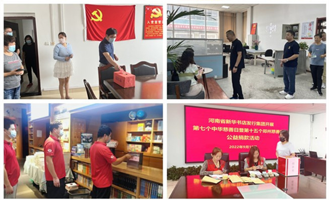 为深入践行《中华人民共和国慈善法》精神,积极贯彻郑州市金水区慈善工作领导小组《关于印发〈金水区2022年“99公益日”暨“慈善日”活动实施方案〉的通知》要求,9月13日,河南省新华书店发行集团本着“安老、慈孤、扶残、助医、助学、济困、赈灾”慈善宗旨,在全店范围内向全体干部职工发出公益慈善募捐倡议,组织开展第七个中华慈善日暨第十五个郑州慈善日公益捐款活动。