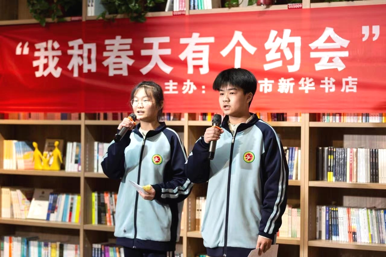 3月19日下午,由登封市新华书店、登封市图书馆、郑品书舍主办,以“我和春天有个约会”为主题的首届“登封市全民朗诵会”,在我店少林路店成功召开。朗诵会上,来自社会各界的20余名朗读者,以独诵、合诵、亲子诵等方式,饱含深情的分享了《黄河颂》、《面朝大海,春暖花开》、《三月的诗篇》、《每到春天》等优美篇章,通过诗歌领略春回大地、万物生发的勃勃生机,通过诗歌体味挣脱严寒、破土重生的昂扬力量,通过诗歌凝聚饱含希望、勇毅前行的奋进精神。