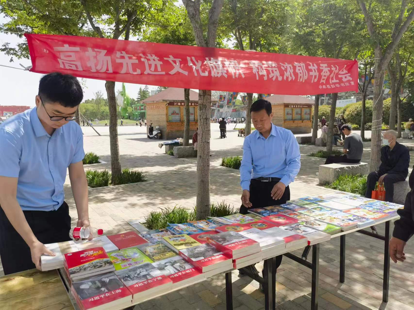 5月1日清早,中牟县店中兴路店的几名营业员已经来到了绿博园景区内,熟练地支起简易展台,整齐摆放好了图书。书展吸引了晨练的人们,大家纷纷驻足翻阅,营业员张春兴热情地向读者们介绍着每本书。