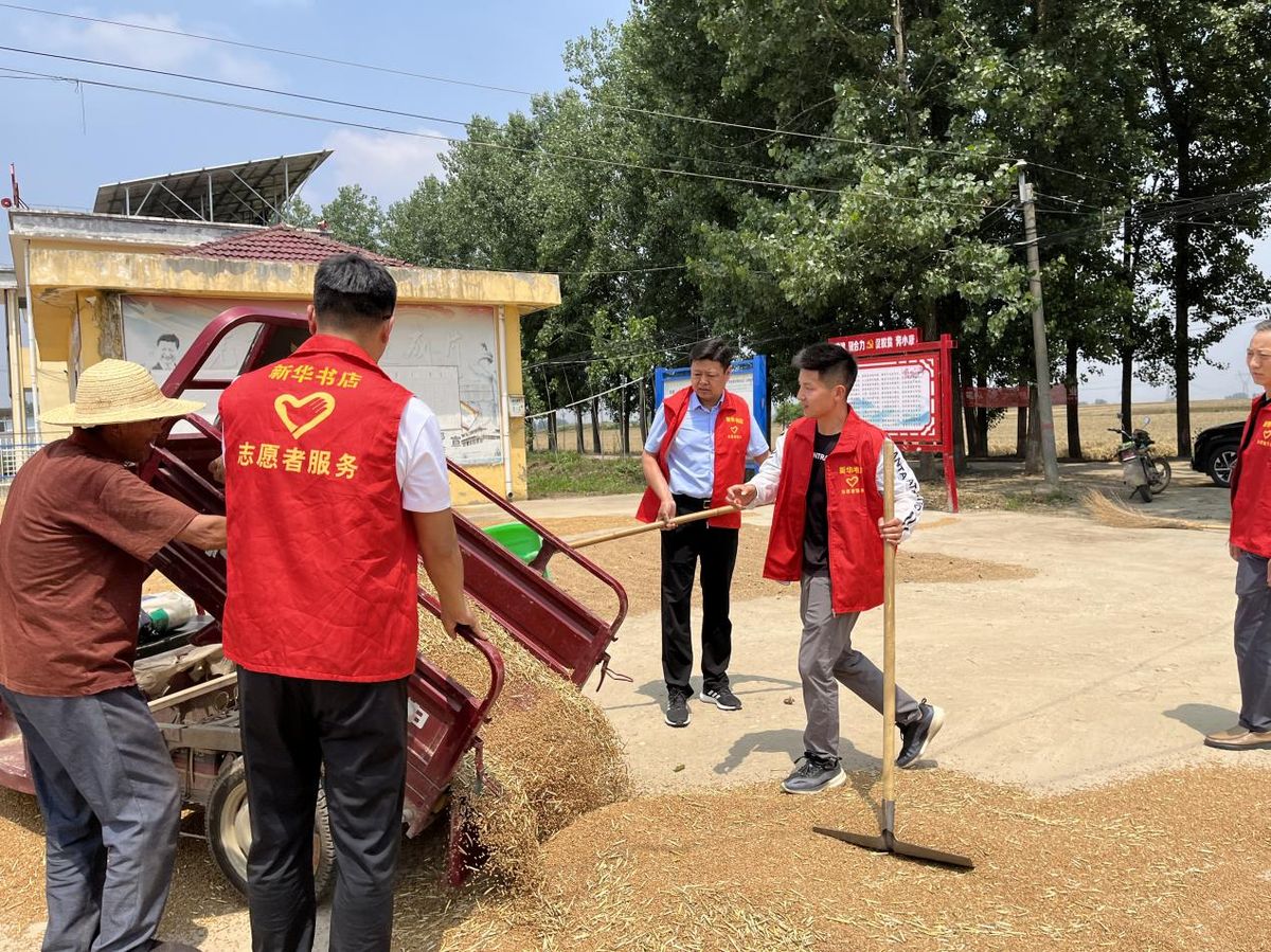 农村收麦忙,县新华书店志愿者来帮忙