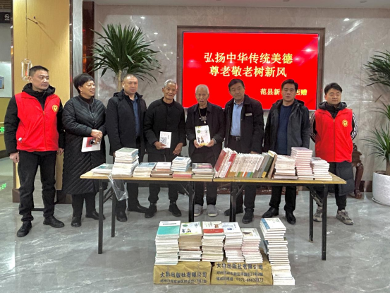 为丰富老年人的精神文化生活,倡导弘扬中华传统美德尊老敬老”文明风尚,2024年1月18日范县新华书店到盛世百福颐养中心开展图书捐赠活动,为那里的老年人们精心挑选价值一万余元的百余册图书,用实际行动继承和发扬敬老、爱老的传统美德。