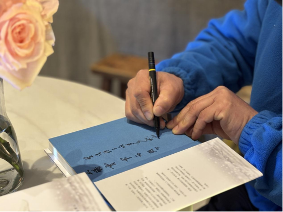 在见面会现场,王计兵与读者们分享了自己的人生故事和诗歌创作心得。他提到,虽然自己初中辍学后从事过多种职业,包括建筑工人、小超市经营者,最困难时甚至曾经拾荒,这也是他笔名“拾荒”的由来……但最喜欢的工作仍是外卖员,诗歌一直是他心灵的寄托。
