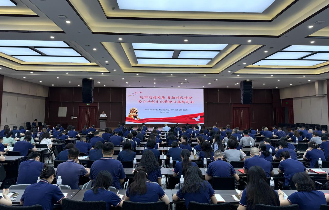 为庆祝中国共产党成立104周年,深入学习贯彻习近平总书记在河南考察时的重要讲话精神,持续巩固深化党规党纪和中央八项规定精神学习教育,7月1日上午,发行集团隆重召开庆“七一”党员大会。 党员大会以重温入党誓词仪式开始。全体党员再一次庄严地向党宣誓,表达了不忘初心、牢记使命,传承党的优良作风,赓续党的精神血脉,为共产主义奋斗终身的坚定信念和决心。