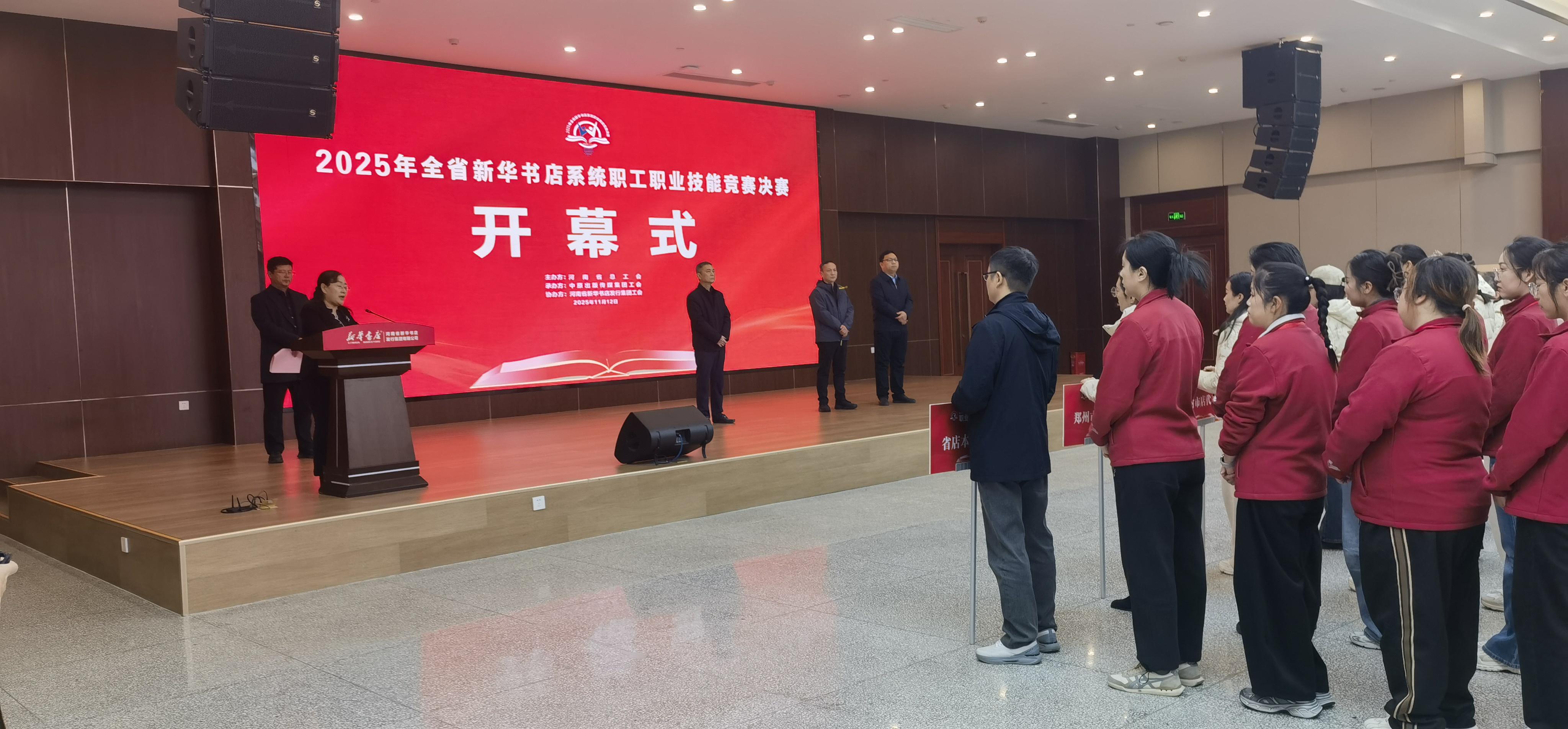 为深入贯彻“尊重劳动、尊重知识、尊重人才、尊重创造”的时代要求,全面提升新华书店职工队伍专业素养与服务能力,助力我省出版发行事业高质量发展。11月11日至13日,2025年全省新华书店系统职工职业技能竞赛决赛在河南出版物流配送中心举办,来自全省18个省辖市店和发行集团本部的19支代表队参赛。中原出版传媒集团党委委员、常委、副书记李文平,中原出版传媒集团工会副主席薛冠华,发行集团相关领导莅临决赛现场进行参观指导。