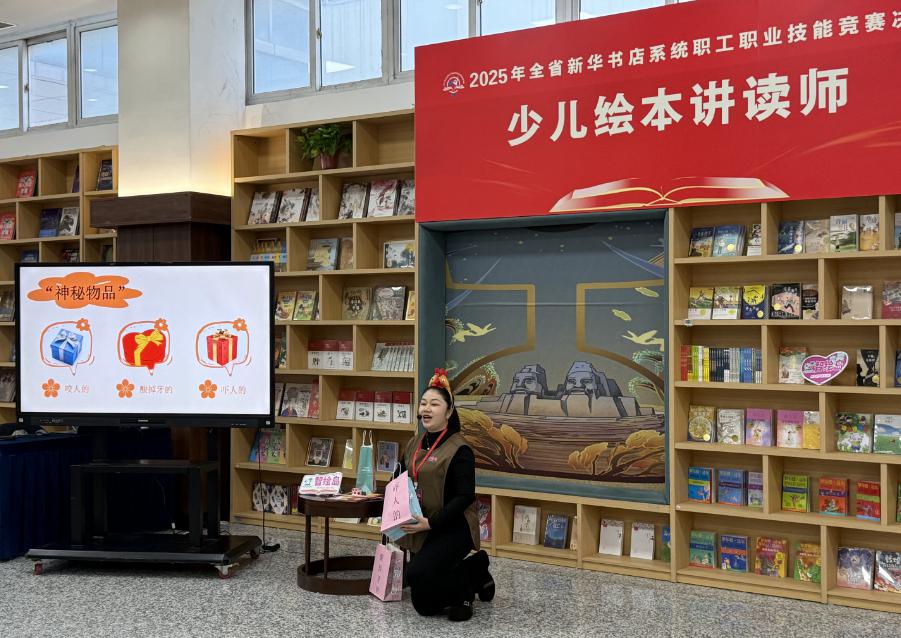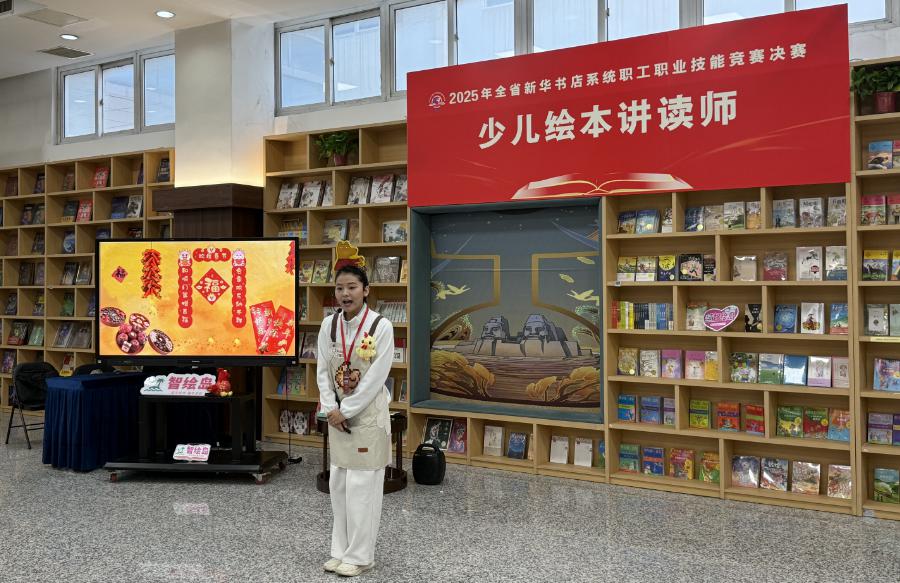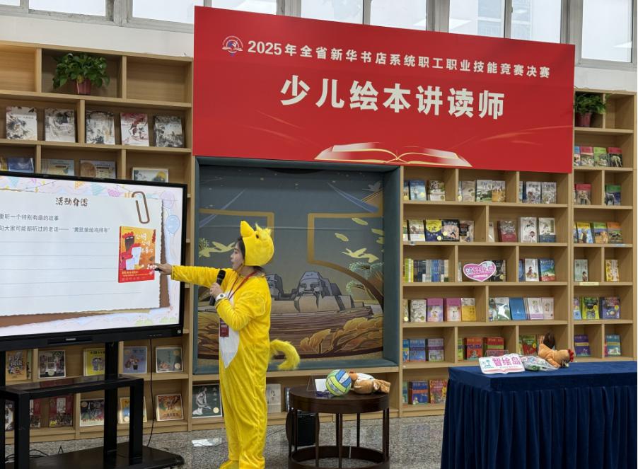 本次大赛坚持“围绕中心、注重实战、服务发展”的办赛理念,紧扣图书发行、阅读服务、创新业务发展等核心领域,设置图书造型及融合美陈、直播荐书、门店研学导师和少儿绘本讲读师四个竞赛项目。赛事设置上,既有对传统业务技能的巩固提升,也有对新技能、新模式的探索实践;赛事规则上,既考验基础功底,更注重考察创新能力。 决赛现场氛围紧张热烈,各项目角逐亮点纷呈。图书造型及融合美陈项目赛场,选手们巧手翻飞,将一本本图书打造成寓意深刻的艺术造型,让书香与美学完美交融;直播荐书项目赛场,选手们化身专业主播,以生动讲解、互动演示精准传递图书核心价值,展现出新时代图书发行的创新表达;门店研学导师项目赛场,选手们结合本土文化特色,将文学、历史、科学等多领域知识融入研学课程,把“五育融合”具象为可感知、可参与的实践体验;少儿绘本讲读师项目赛场,选手们化身“故事魔法师”,以精巧灵动的设计、充满童趣的互动,展现出少儿阅读的精彩体验。比赛间隙,选手们相互交流经验、切磋技艺,在比拼中找差距、在交流中促提升,充分彰显了“比学赶超”的良好氛围。