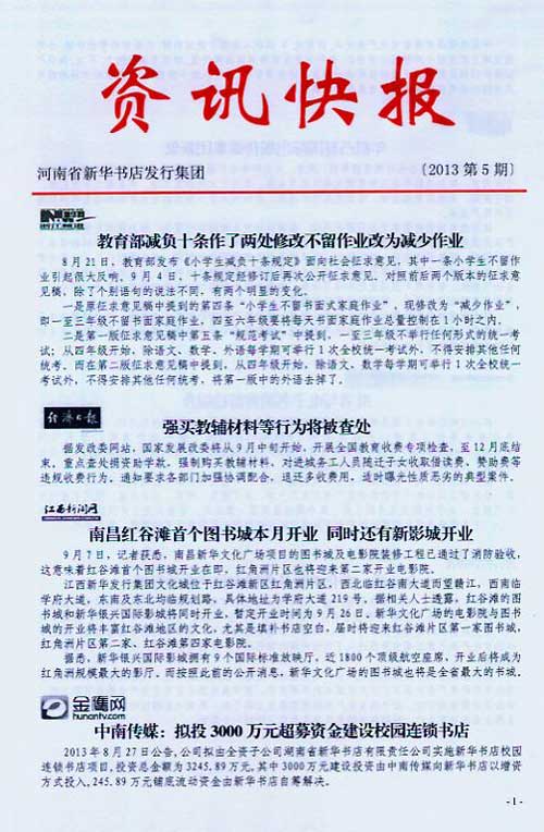 来源:河南省新华书店发行集团有限公司  作者:河南省新华书店发行集团有限公司  发布时间:2013/9/12 9:26:47  阅读次数:7526