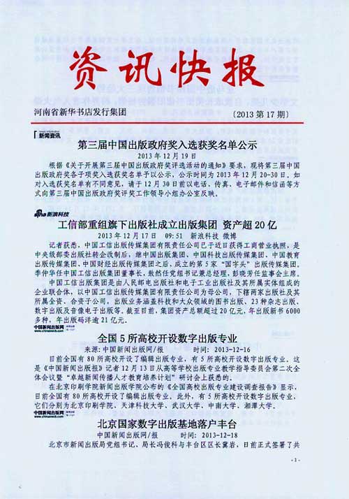 来源:河南省新华书店发行集团有限公司  作者:河南省新华书店发行集团有限公司  发布时间:2013/12/23 12:32:11  阅读次数:8098