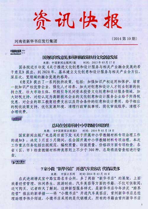 来源:河南省新华书店发行集团有限公司  作者:河南省新华书店发行集团有限公司  发布时间:2014/3/19 10:08:34  阅读次数:14020