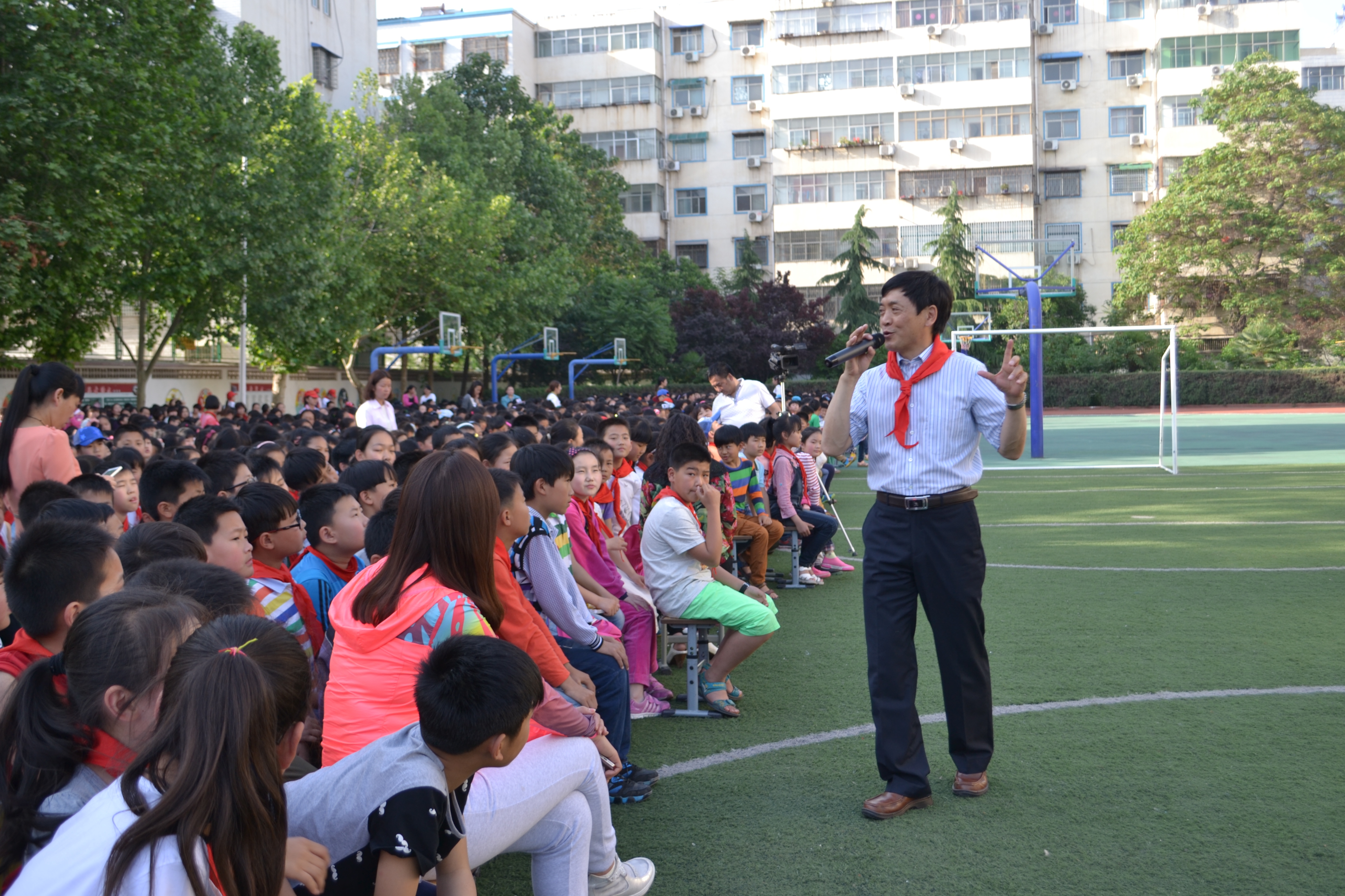 5月13日下午,新密市店邀请著名少儿作家曹文轩到新密市直三小开展以“亲近阅读,提升写作”为主题的讲座活动,全校师生近4000人参加了活动。曹老师深入浅出、幽默风趣的讲座,赢得了全校师生的热情赞誉,更加坚定了读书、写作的信心。大家非常珍惜与著名作家面对面交流互动机会,纷纷要求与作家交流、合影,现场气氛异常热烈、火爆。