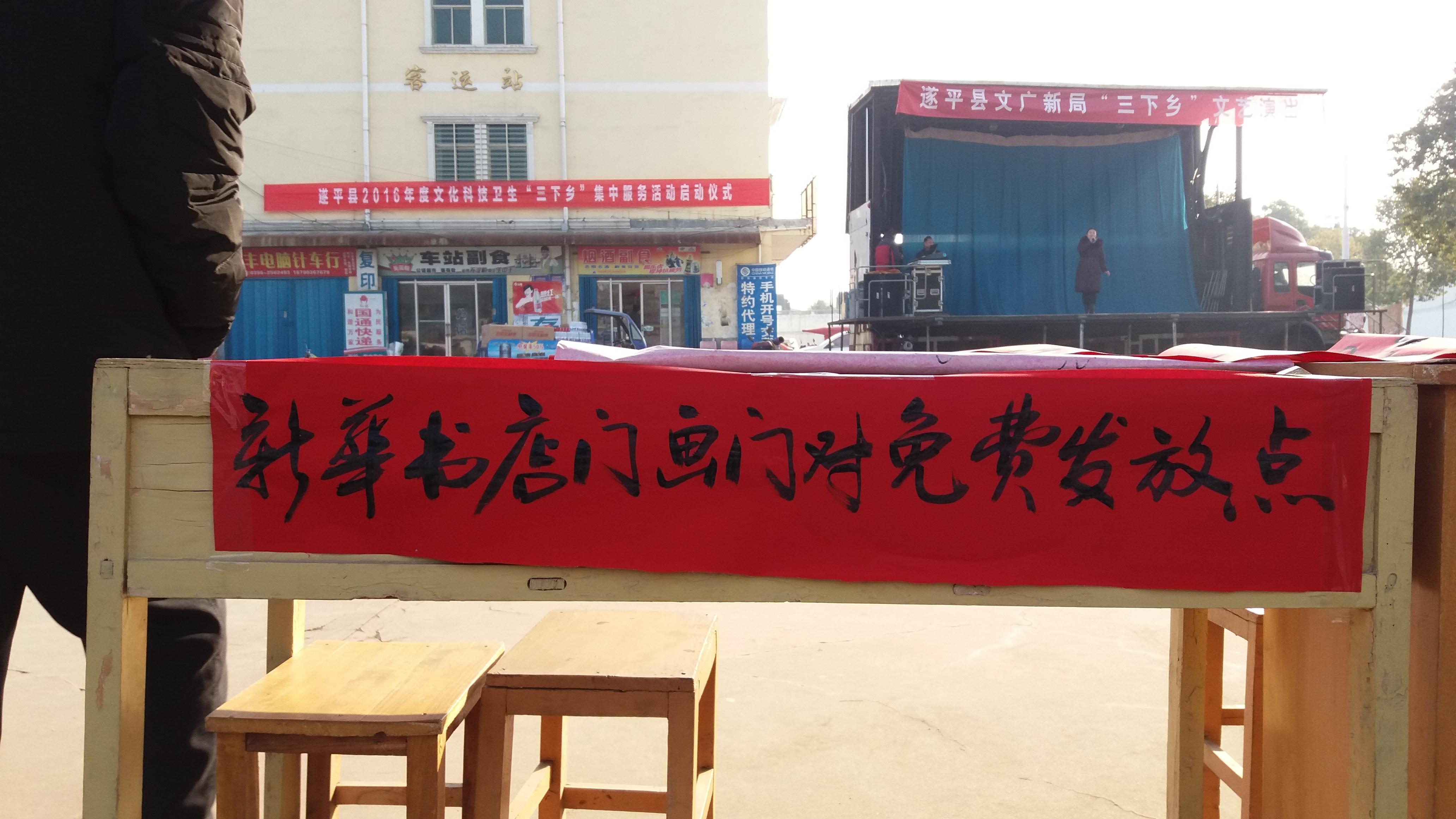 1月27日上午,遂平县店积极参加了县委宣传部统一组织的全县“2016年文化科技卫生三下乡”活动,在车站镇活动现场,为广大群众免费发放春联1000多幅,受到群众的热烈欢迎。